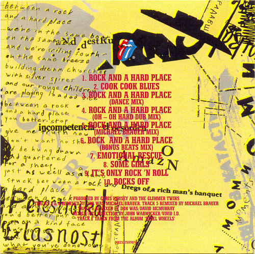 Japan, Rolling Stones Records / Polydor UICY-5011/55 CD28 - #0602527597874 Rock And A Hard Place (1989) 28-1 Rock And A Hard Place 4:12 28-2 Cook Cook Blues 4:13 28-3 Rock And A Hard Place (Dance Mix) 6:55 28-4 Rock And A Hard Place (Oh - Oh Hard Dub Mix) 6:56 28-5 Rock And A Hard Place (Michael Brauer Mix) 7:07 28-6 Rock And A Hard Place (Bonus Beats Mix) 4:10 28-7 Emotional Rescue 5:37 28-8 Some Girls 4:38 28-9 It's Only Rock 'N Roll 5:08 28-10 Rocks Off 4:31 https://www.covrik.com/covers/201502...28front_rs.png https://www.covrik.com/covers/201502...c28back_rs.png https://www.covrik.com/covers/201502...isc28cd_rs.png https://www.covrik.com/covers/201502...atrix28_rs.png |