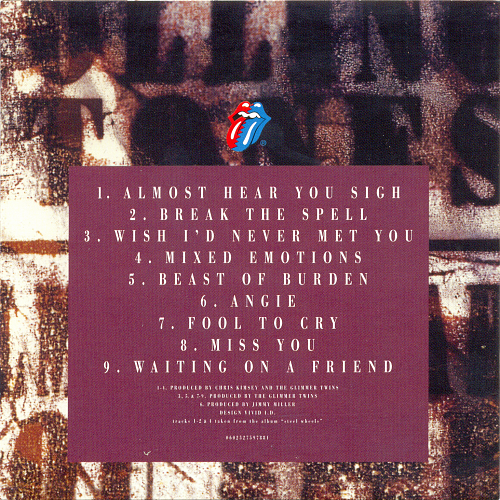 Japan, Rolling Stones Records / Polydor UICY-5011/55 CD29 - #0602527597881 Almost Hear You Sigh (1989) 29-1 Almost Hear You Sigh 4:37 29-2 Break The Spell 3:07 29-3 Wish I'd Never Met You 4:44 29-4 Mixed Emotions 4:03 29-5 Beast Of Burden 4:27 29-6 Angie 4:32 29-7 Fool To Cry 5:06 29-8 Miss You 3:37 29-9 Waiting On A Friend 4:35 https://www.covrik.com/covers/201502...29front_rs.png https://www.covrik.com/covers/201502...c29back_rs.png https://www.covrik.com/covers/201502...isc29cd_rs.png https://www.covrik.com/covers/201502...atrix29_rs.png |