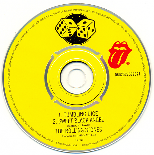 Japan, Rolling Stones Records / Polydor UICY-5011/55 CD03 - #0602527597621 Tumbling Dice / Sweet Black Angel (1972) 3-1 Tumbling Dice 3:45 3-2 Sweet Black Angel 2:55 https://www.covrik.com/covers/201502...03front_rs.png https://www.covrik.com/covers/201502...c03back_rs.png https://www.covrik.com/covers/201502...isc03cd_rs.png https://www.covrik.com/covers/201502...atrix03_rs.png |
