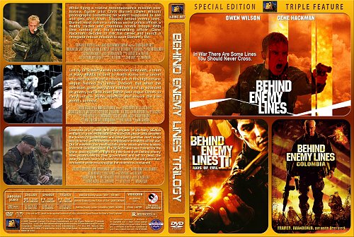 1. В тылу врага / Behind Enemy Lines (2001) США, режиссёр Джон Мур 2. В тылу врага 2: Ось зла / Behind Enemy Lines II: Axis of Evil (2006) США, режиссёр Джеймс Додсон 3. В тылу врага 3: Колумбия / Behind Enemy Lines: Colombia (2009) США, режиссёр Тим Мэтисон https://www.covrik.com/covers/201809...backdvd_rs.jpg |
