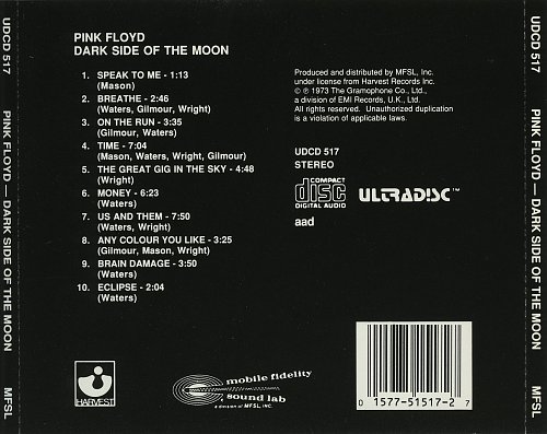 Pink Floyd - The Dark Side Of The Moon 1973 [1998, Japan, MFSL UDCD 517]