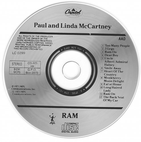 Paul and Linda McCartney - Ram (1971/1992, MPL, Capitol Records, CD-RTI 2875 1, Unofficial Release)