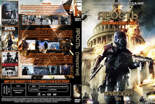 1.Ярость/ Rampage (2009) 2.Ярость: Смертная казнь/Rampage: Capital Punishment (2014) 3.Ярость 3/Rampage: President Down (2016) https://www.covrik.com/covers/20170111/zrosti3v1_rs.jpg |