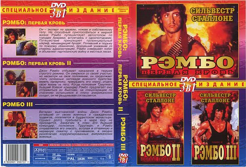 1. Рэмбо: Первая кровь / First Blood (1982) США, режиссёр Тед Котчефф 2. Рэмбо: Первая кровь 2 / Rambo: First Blood Part II (1985) США, режиссёр Джордж П. Косматос 3. Рэмбо 3 / Rambo III (1988) США, режиссёр Питер МакДональд https://www.covrik.com/covers/201807...backdvd_rs.jpg |