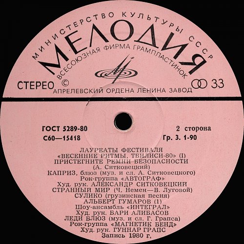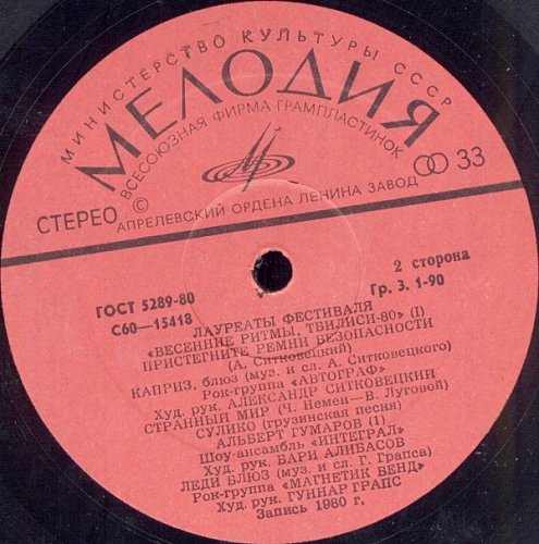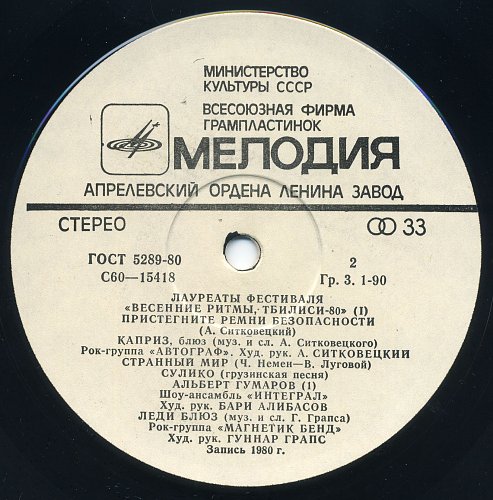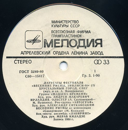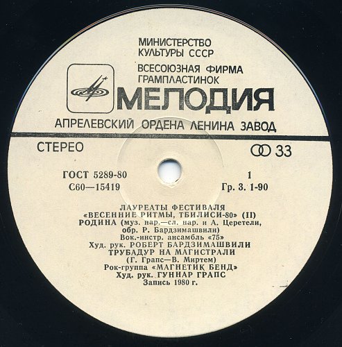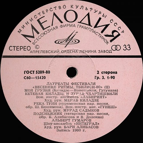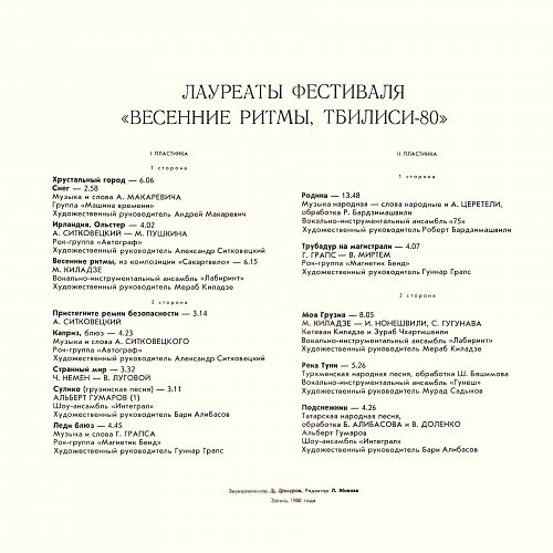 Тбилиси-80. Лауреаты фестиваля "Весенние ритмы" (1981) [Мелодия АЗГ 2LP С60-15417-20]
