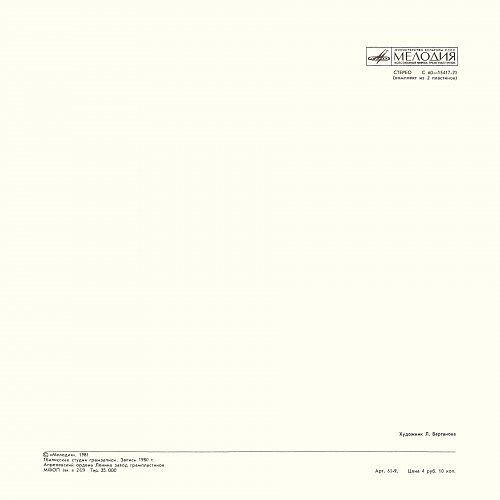 С60—15417-20 (2 пластинки) Запись 1980 год. 1981 Апрелевский завод грампластинок https://www.covrik.com/covers/20210817/3_rs.jpg https://www.covrik.com/covers/20210817/4_rs.jpg https://www.covrik.com/covers/20210817/5_rs.jpg https://www.covrik.com/covers/20210817/6_rs.jpg |