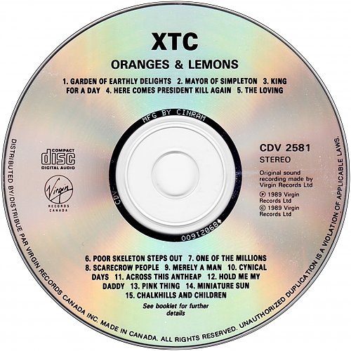 XTC - Oranges and Lemons (1989 Virgin Records Ltd., Virgin Records Canada Inc., Canada)