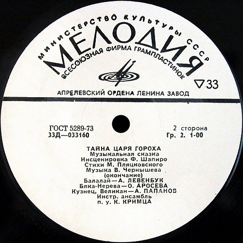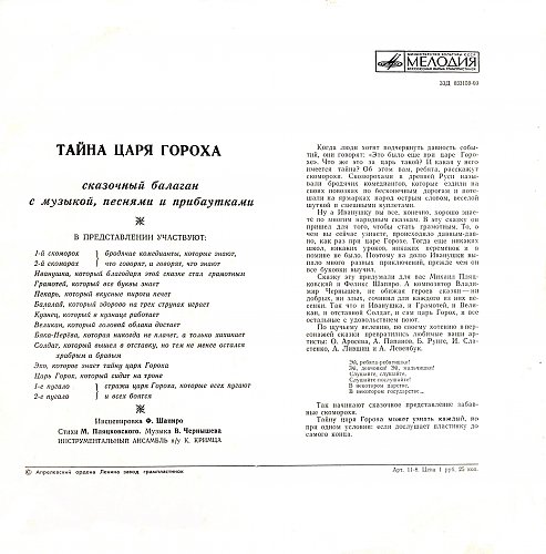 Тайна царя Гороха. Музыкальная сказка (1972) [LP Д-033159-60]
